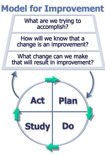 It’s the structured approach we use to try and tackle some of the problems we face in our services. It’s made up of 3 questions and the ‘PDSA cycle’ – which is a method of testing on a small scale in the real world until we understand the best way to do things.