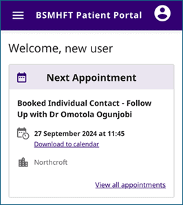 BSMHFT have worked with our experts by experience (EBEs) to design and co-produce the patient portal, building the core functionality, which includes appointment details, viewing care plans, and easy login.